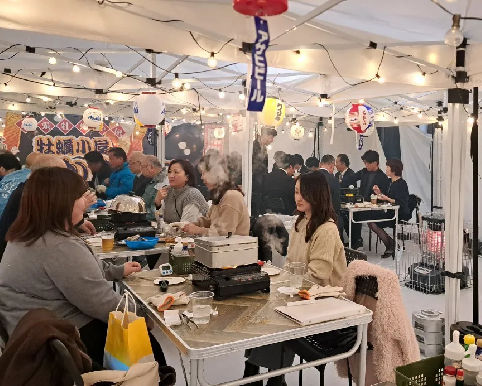 かき太鼓では、すべてのお客様に「焼き方のご案内」を行い、安全にお召し上がりいただけるようサポートしています。