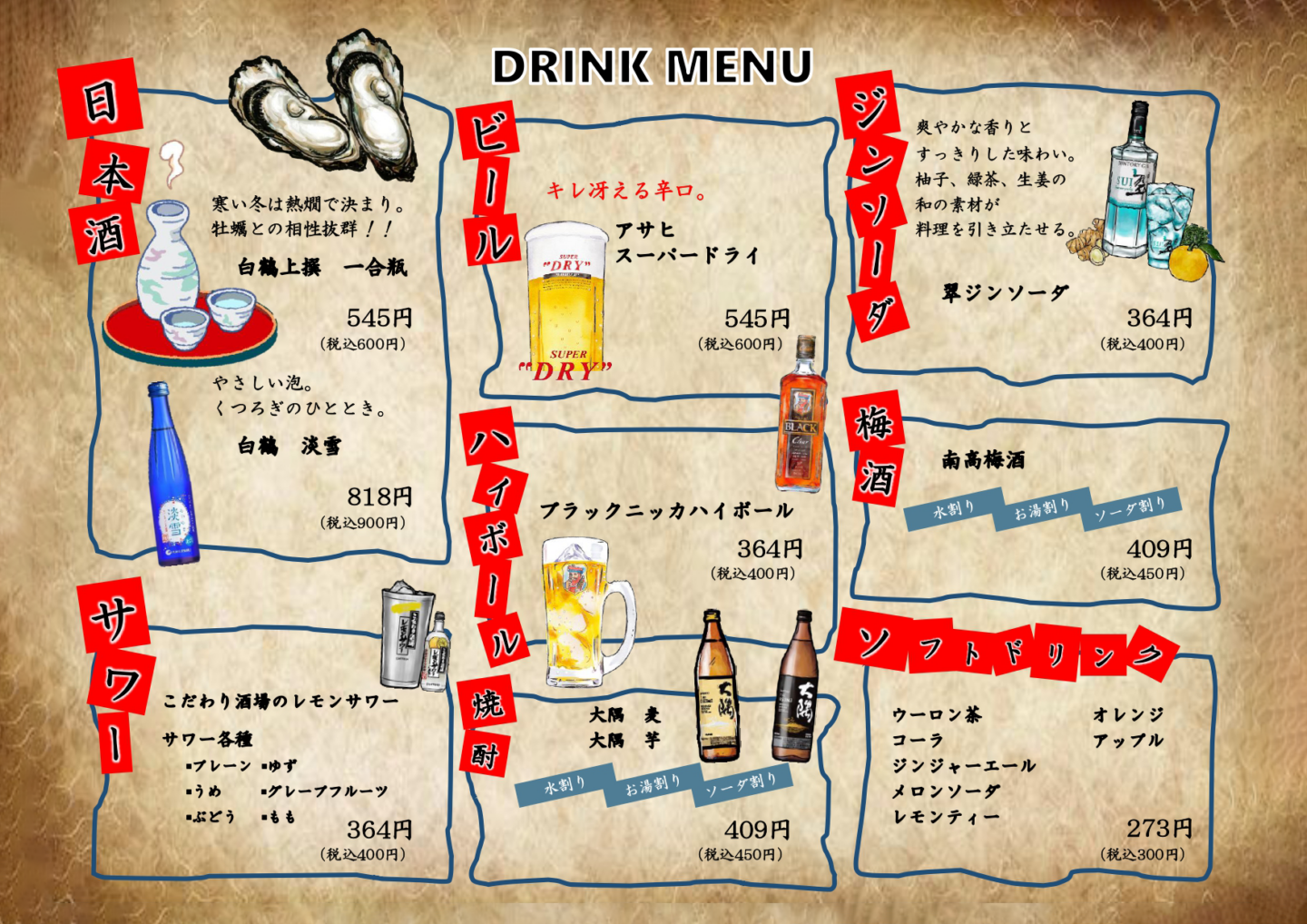 ※ ドリンクLO:21:30、フードLO:21:00