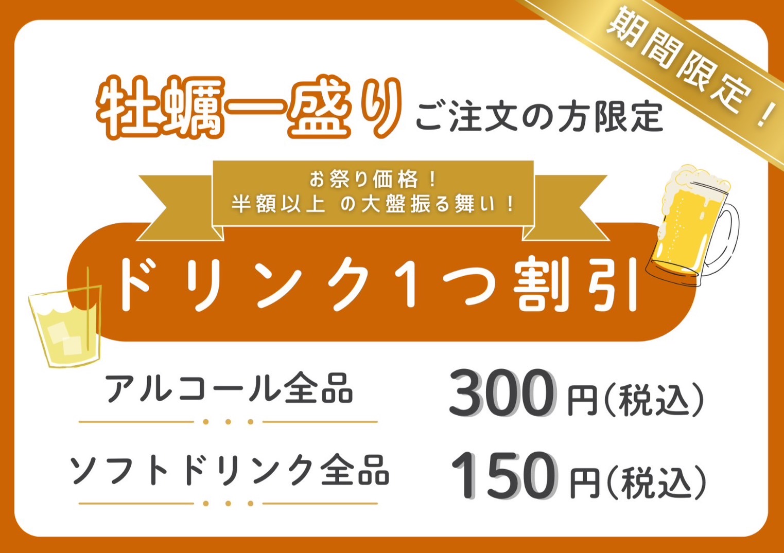 牡蠣の旨味を引き立てる日本酒やビール、さっぱりとしたレモンサワーなど、お好きなドリンクをお得に楽しめるチャンスです!